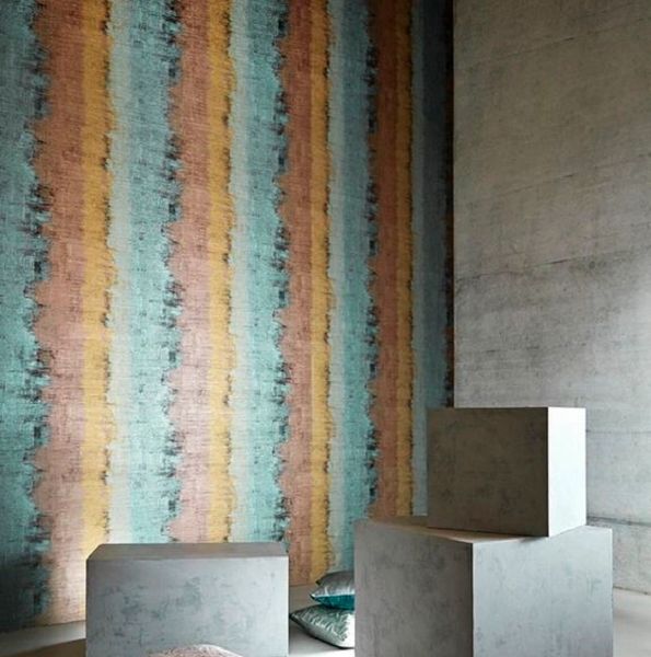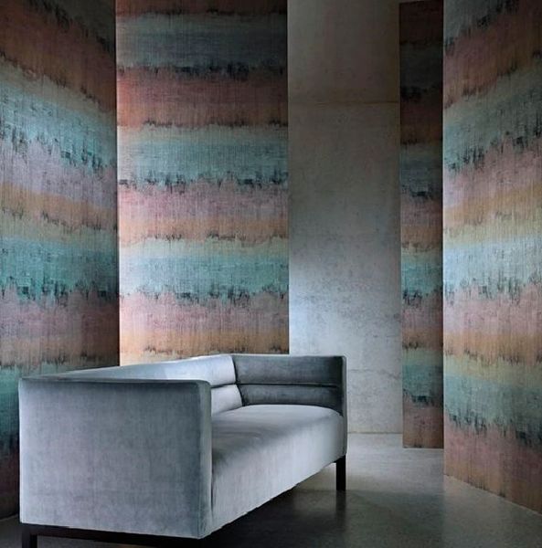 Lustre is a vinyl wallcovering with a painterly impressionistic design which creates a raw stripe effect on an embossed crackle-effect ground. Available in four colourways this designs looks equally striking hung both vertically and horizontally.